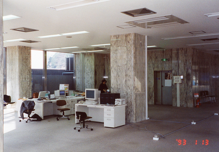 創業当時のオフィスの様子。現在の山王パークタワーの位置にある解体予定のビルの1階、