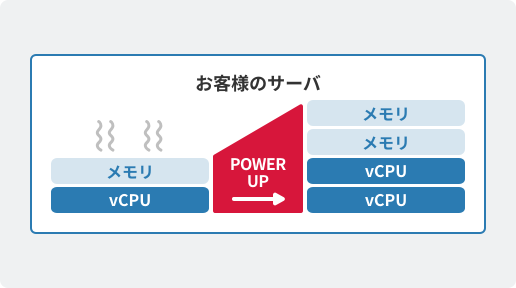 アクセス集中時も安心一時的にアクセスが集中したら、即座にサーバスペックをアップ。サイトダウンを回避できます。