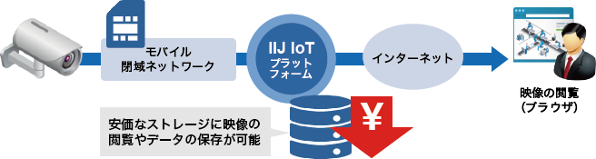 センシングされたデータは、リアルタイムで外部システムやクラウドに連携できる他、月額7円/GBの低コストなクラウドストレージへ保存することもできます。センサーデータをお客様システムに転送しながら、IoTサービスでバックアップも可能です。