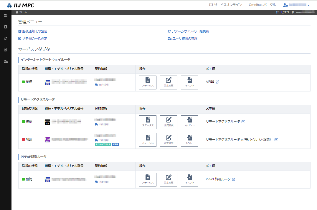 - IIJ FiberAccess/Uサービス、IIJマルチプロダクトコントローラサービス モバイルアクセスオプションには回線サービスが含まれます。