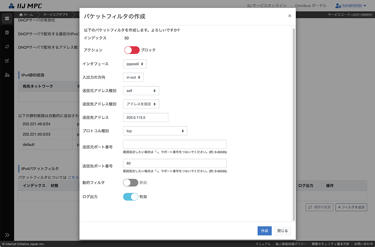 | IIJ IPv6 FiberAccess/Fサービス タイプIPoE | IPv4接続(固定IP) | |||