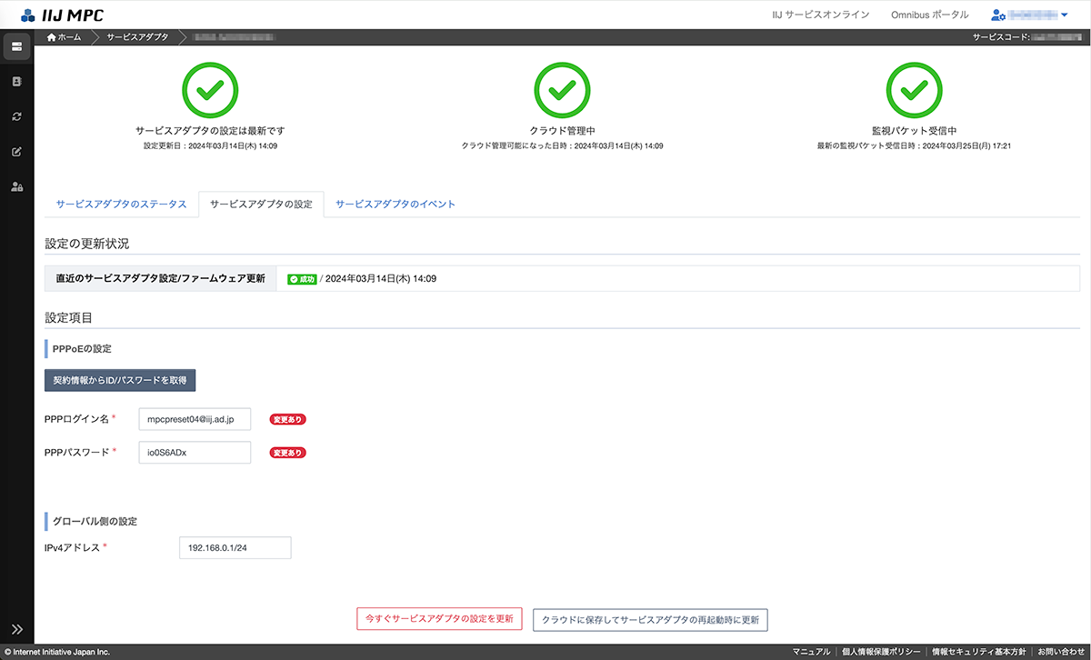 - IIJ FiberAccess/Fサービス、IIJ IPv6 FiberAccess/Fサービス タイプIPoEの場合は、IIJ回線マネージメント/Fサービスを併せてご契約ください。