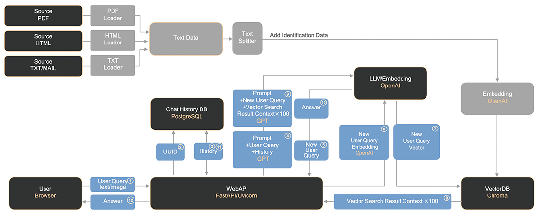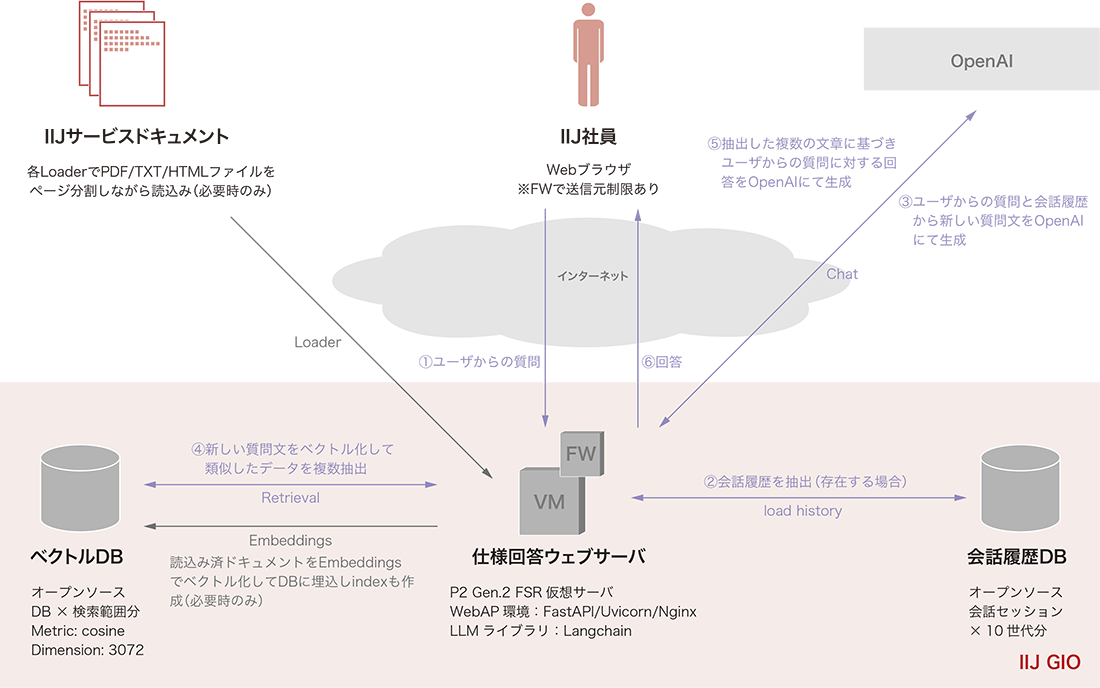 こうした状況を背景に、社内に点在するドキュメントデータを収集・加工し、一元的にデータベースとして集約すると共に、生成AIを活用して質問内容に即した具体的な回答を提供できることを目指して、社内RAG基盤の開発に着手しました。