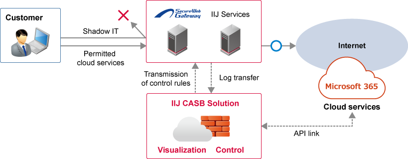 Using this service together with the IIJ Secure Web Gateway Service and other services enables control of shadow IT issues detected by CASB.