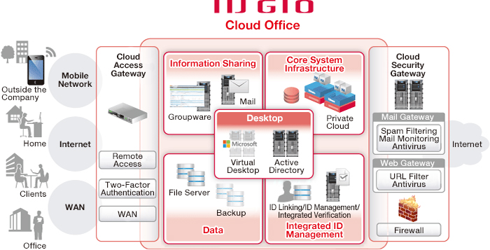 Implementing Web access control, mobile device management, and other security technologies together enables us to configure an appropriate security level for each customer.