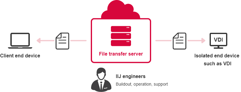 IIJ File Transfer Solution with Soliton is a service that can transfer files "from a person to themself" in an isolated network environment.