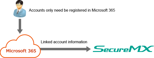 When Microsoft 365 is used together with this service, Microsoft 365 email account information is automatically linked with account lists (whitelists) used by this service. This feature eliminates having to register accounts twice and so reduces load on operations.