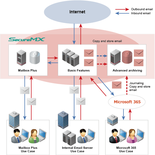 In addition to email security functions, compliance functions are available to maintain corporate compliance in emails, such as email data storage (archives) as trail storage and supervisor approval at the time of sending.