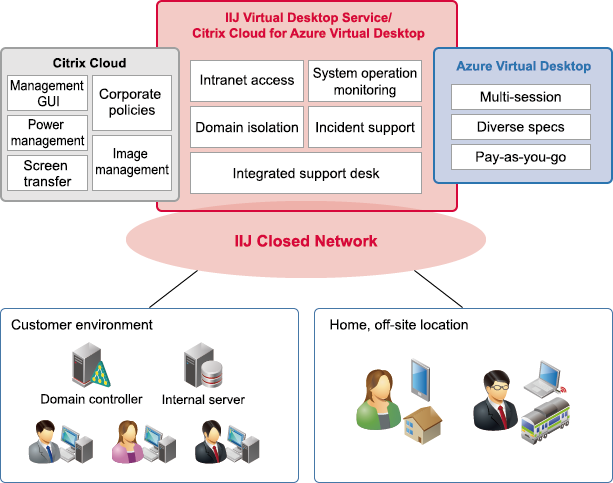 The IIJ Virtual Desktop Service/Citrix Cloud for Azure Virtual Desktop is a full management service for "Citrix Cloud" and "Azure Virtual Desktop (AVD)," a DaaS (Desktop as a Service) from Microsoft.