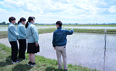 Leveraging IIJ's knowledge in smart agriculture in the IoT business, it sent an employee to Miyagi Tome General Industrial High School to hold a class for students of the high school's Agricultural Department on the management of rice paddies' water levels using IoT sensors and the acquired data. The class included lectures and the exchange of opinions.