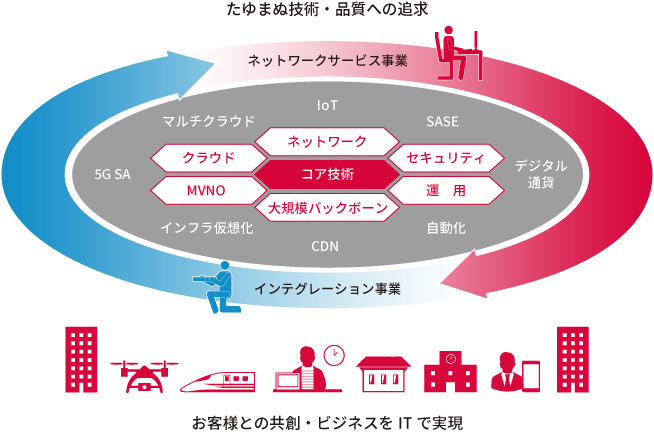 5G SA、SASE、マルチクラウド運用技術、セキュリティ脅威情報分析基盤、インフラ仮想化/自動化技術、サービス品質向上に向けた取り組み