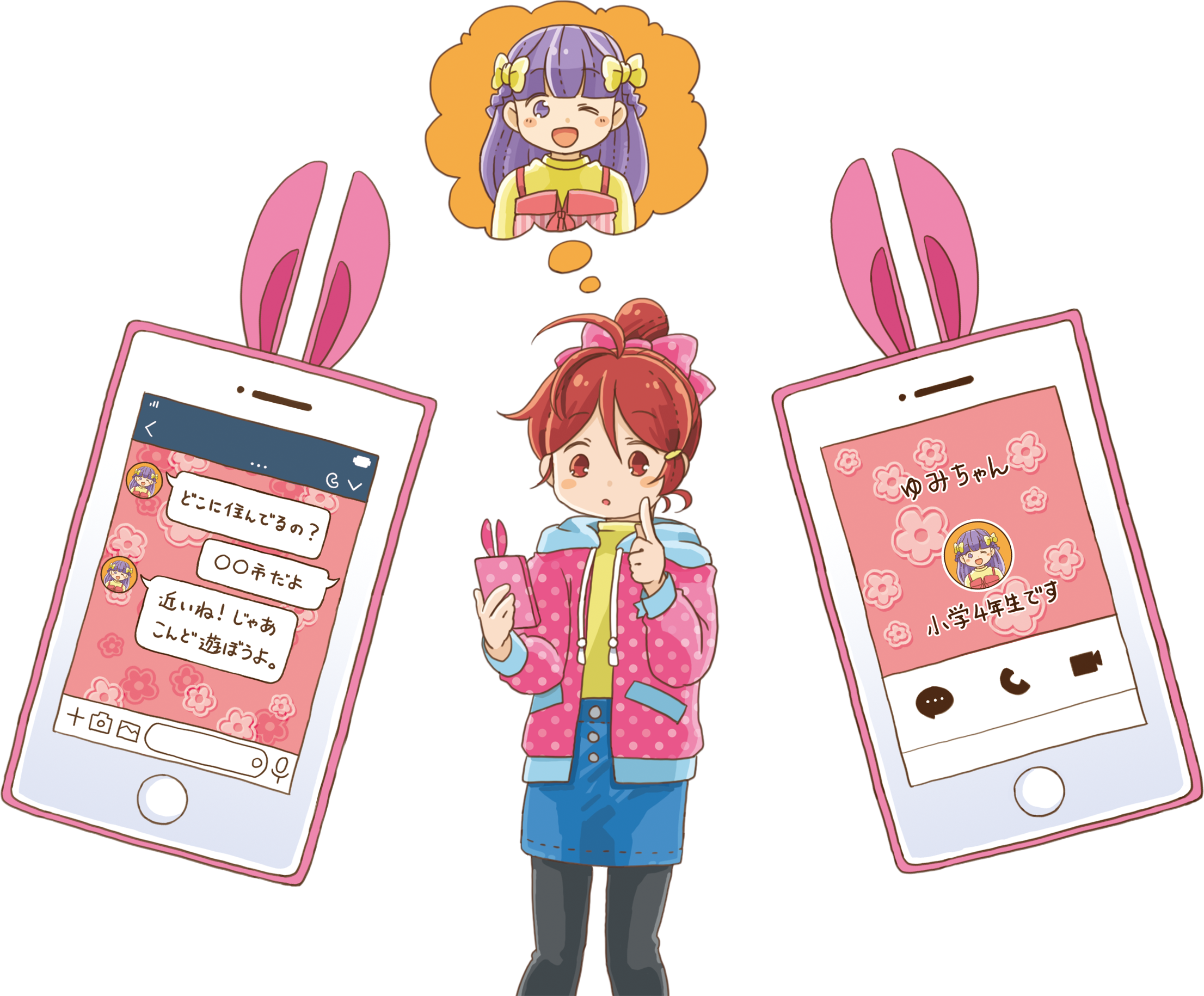 インターネットを通じてステキな友だちと出会うかもしれない。でも、悪い人とも出会ってしまうかもしれないから、気をつけて!
