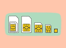 SIMカードは、指先程度のサイズの小さなカードです。スマートフォンやモバイルルータだけでなく、通話がメインの「フィーチャーフォン」にも取り付けられています。