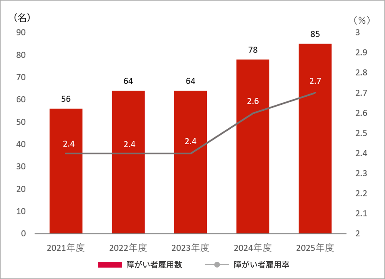 | 育児休業制度 利用率 | 男性 | 26.4% | 24.6% | 33.3% | 53.5% | 61.9% |