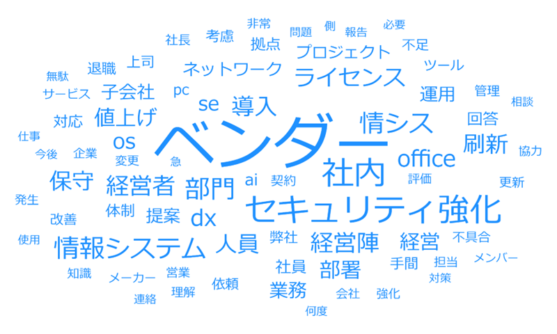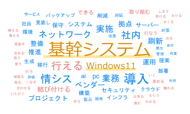 - 2024年に頑張ったこととして、「基幹システム」「Windows 11」の登場頻度が増加