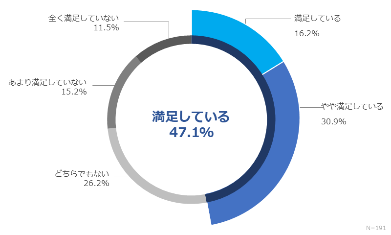 - 頑張りに対する会社の評価に満足しているのは約5割